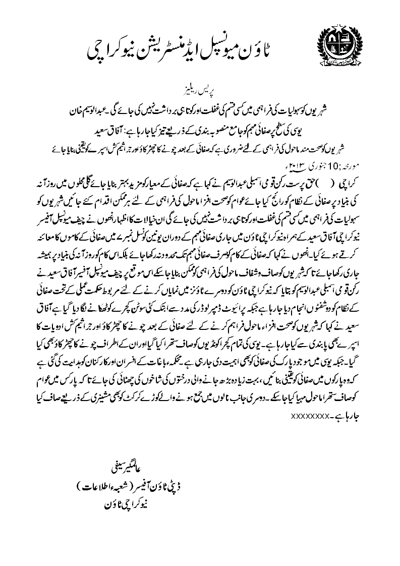 10th Jan 2013 MNA Abdul Waseem Inspect Cleanliness Drive in New Karachi Town