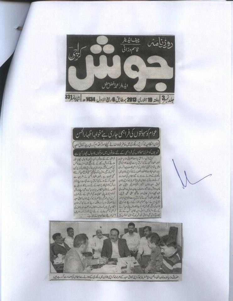 حق پرست صوبائی وزیر سندھ خواجہ اظہار الحسن ، ایڈمنسٹریٹر نیو کراچی ٹاؤن آفاق سعید کے ہمراہ نیو