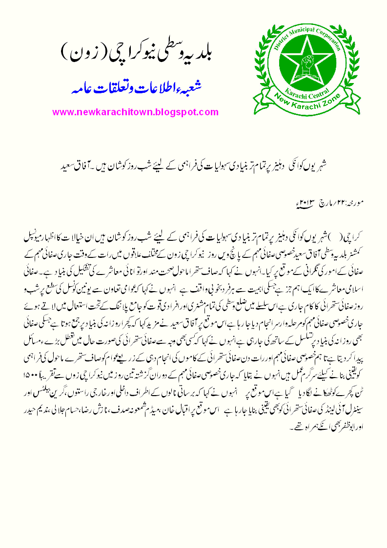 22nd March 2013 DMC Central New Karachi Zone News & Picture